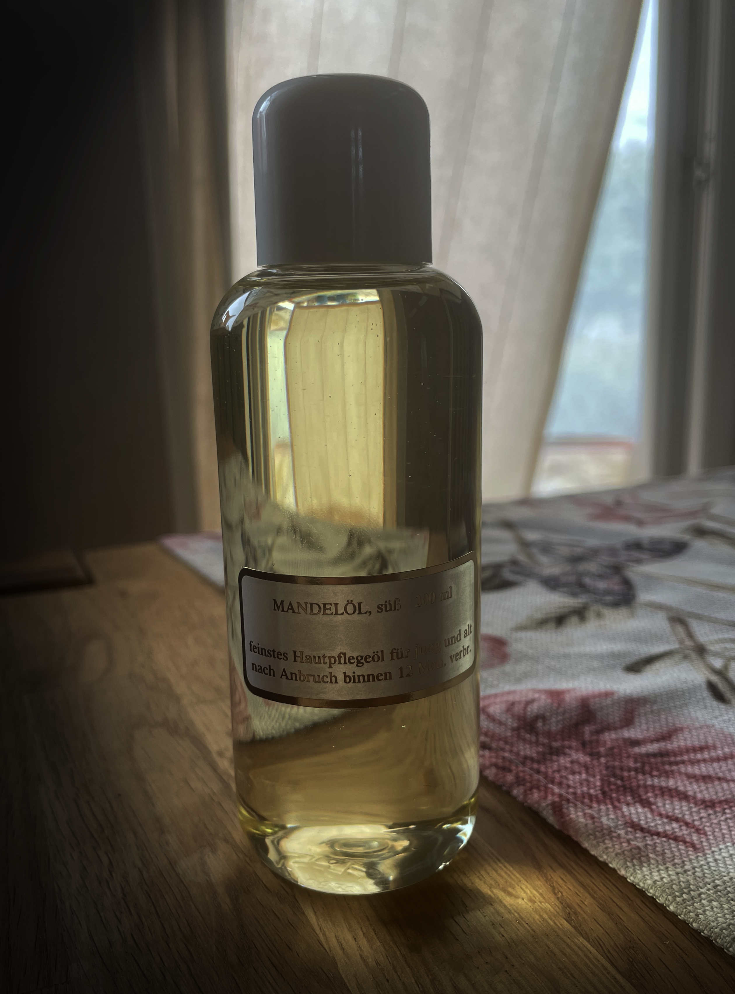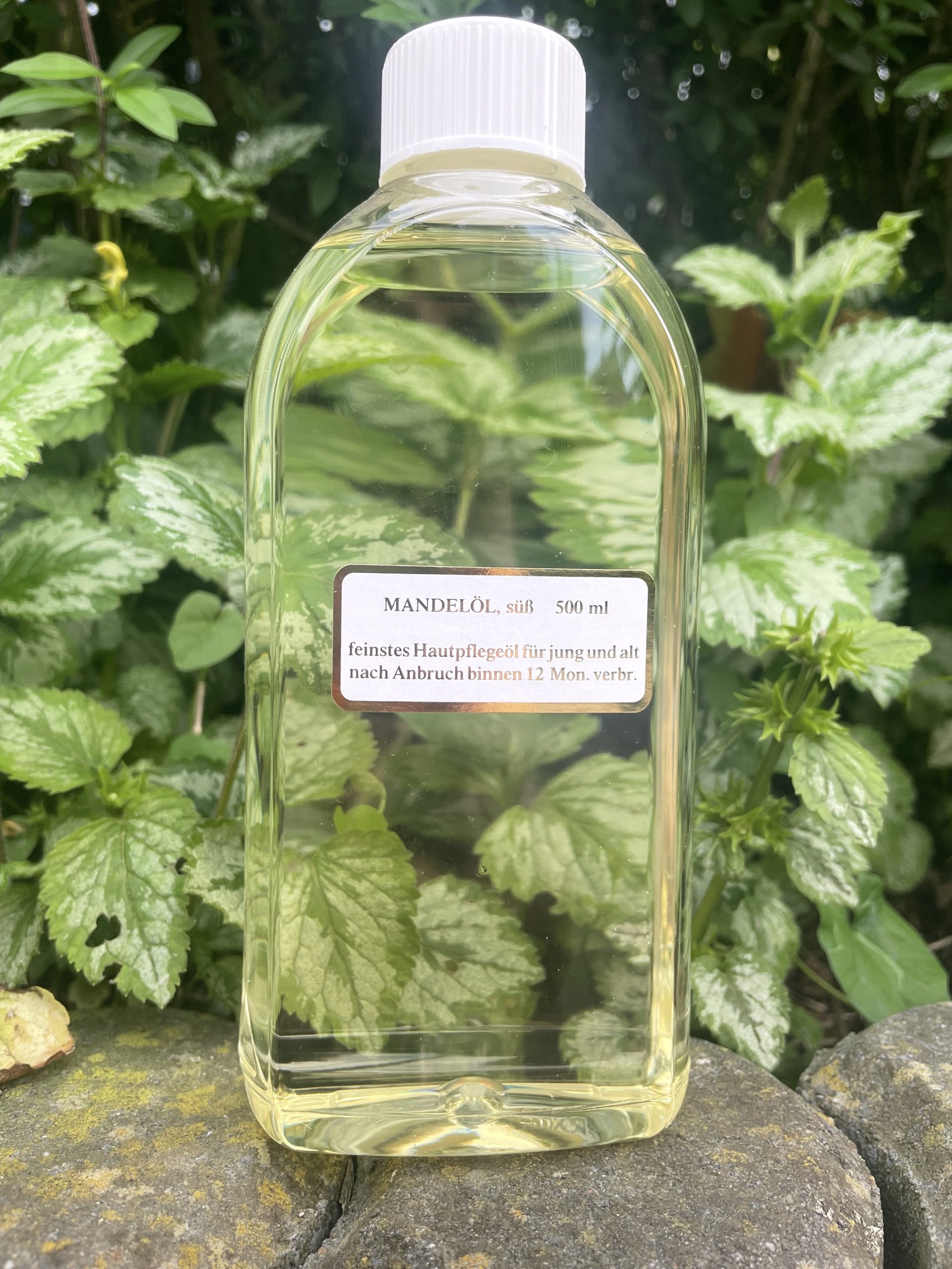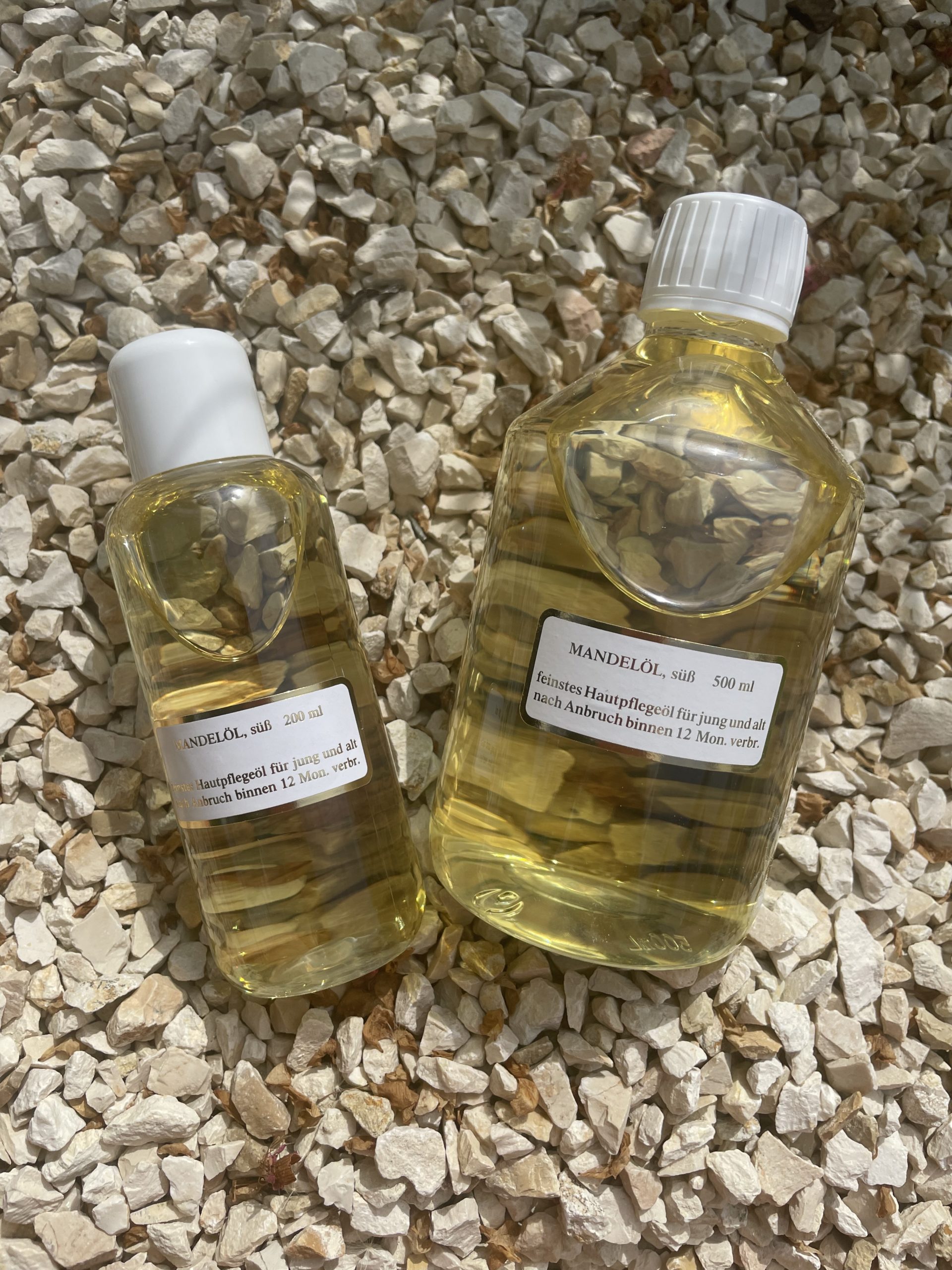 Naturreines Mandelöl (Süßmandel) wirkt beruhigend, schützend, stärkend und ist sehr gut verträglich. Die ideale Basispflege für empfindliche Haut und alle Hauttypen, perfekt nicht nur zur Babypflege oder für Schwangere sondern auch für Menschen in jedem Alter. Mandelöl stärkt die Haut, fördert die Zellregeneration und schützt die Haut vor Umwelteinflüssen. Es wirkt reizlindernd zum Beispiel bei entzündlicher, juckender Haut. Hilft trockener Haut in Balance zu kommen und hinterlässt ein weiches, gepflegtes Hautgefühl. Mandelöl ist ein mildes Körperöl und eignet sich zur Massage, außerdem lässt es sich sehr gut mit ätherischen Ölen mischen. Es ist ein beliebtes Basisöl für die Aromapflege. Kaltgepresst ist es auch als Lebensmittel gut genießbar. Das kaltgepresste Öl kann so beispielsweise in Salaten verwendet werden.
